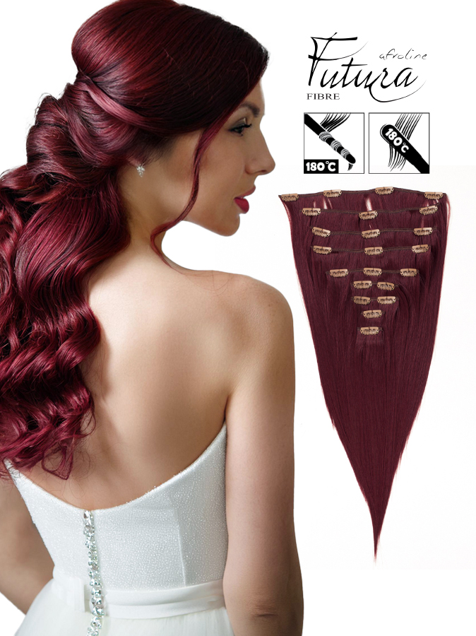 Az AFROline FUTURA csatos póthaj vasalható és göndöríthető 180 Celsius fokon, de festeni nem lehet, anyagában színes szintetikus póthaj